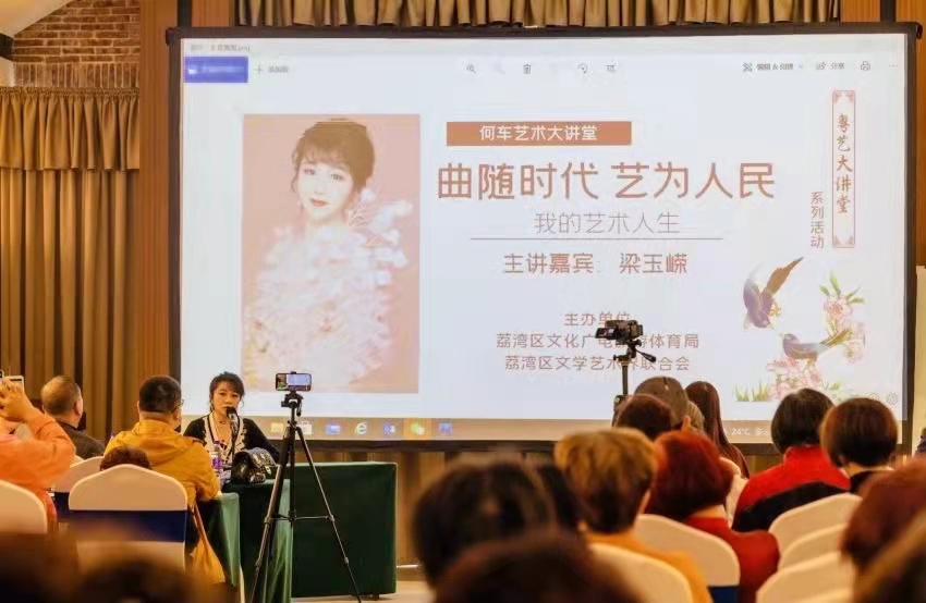 著名粤曲演唱艺术家、国家级非物质文化遗产粤曲省级传承人、国家一级演员梁玉嵘担任主讲嘉宾,从“声”、“色”、“艺”三部分还原她的艺术人生,传递曲艺表演从艺理念,带领一众市民群众走进岭南曲艺的世界,感受岭南文艺背后的西关风情。讲座通过网络直播的方式吸引近7万人次观看。