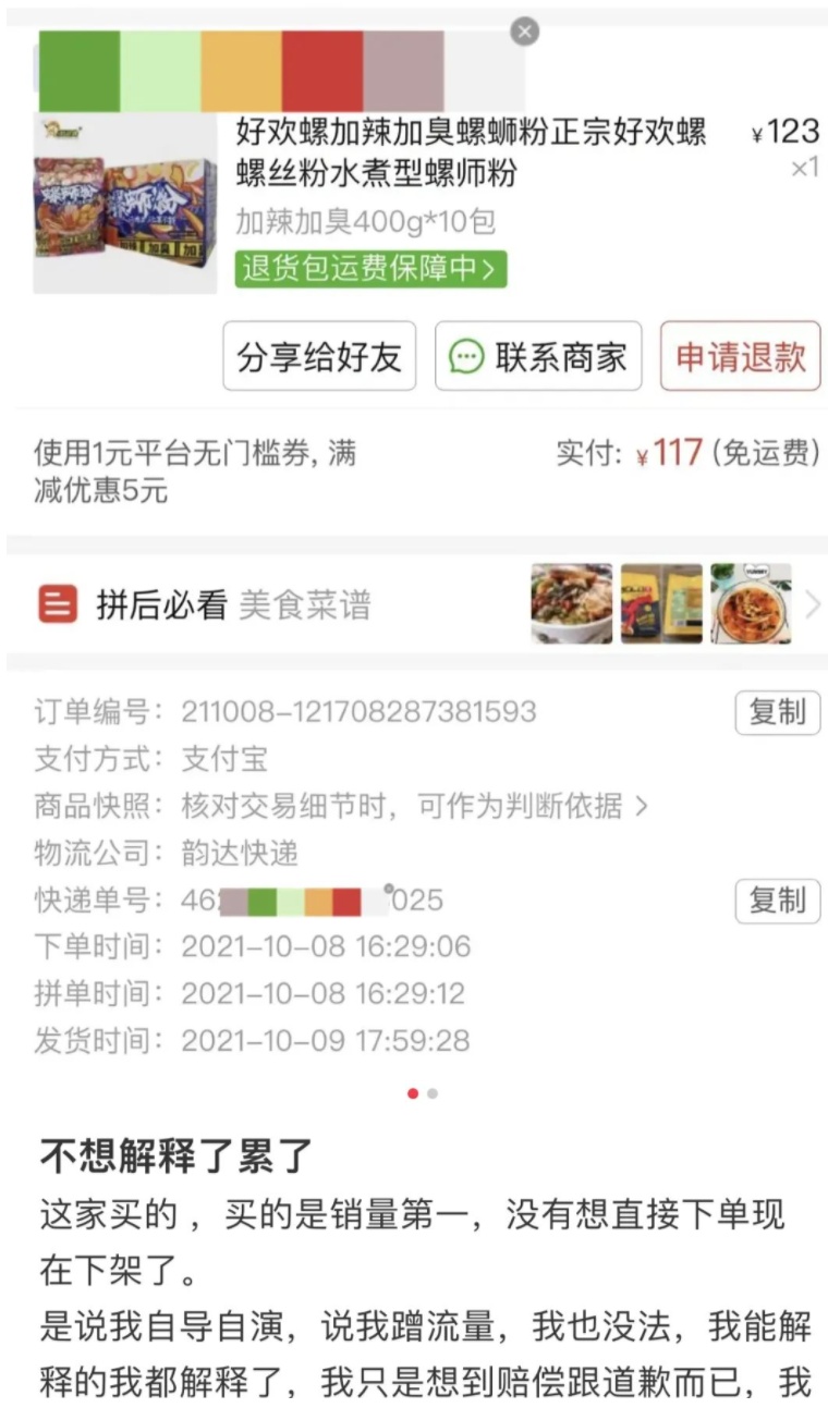 近日,有网友在社交媒体平台称好欢螺里吃出虫卵。