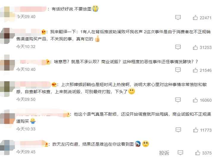 回应中称,“得益于出色的产品口碑和长期品牌坚守,好欢螺广受顾客赞誉,但商业诋毁时有发生。从某网友于2021年11月25日发布笔记起,到各微博号转发至冲上微博热搜仅用时2天,此次事件发酵迅速超乎常态,我方将针对事件进行核查。”