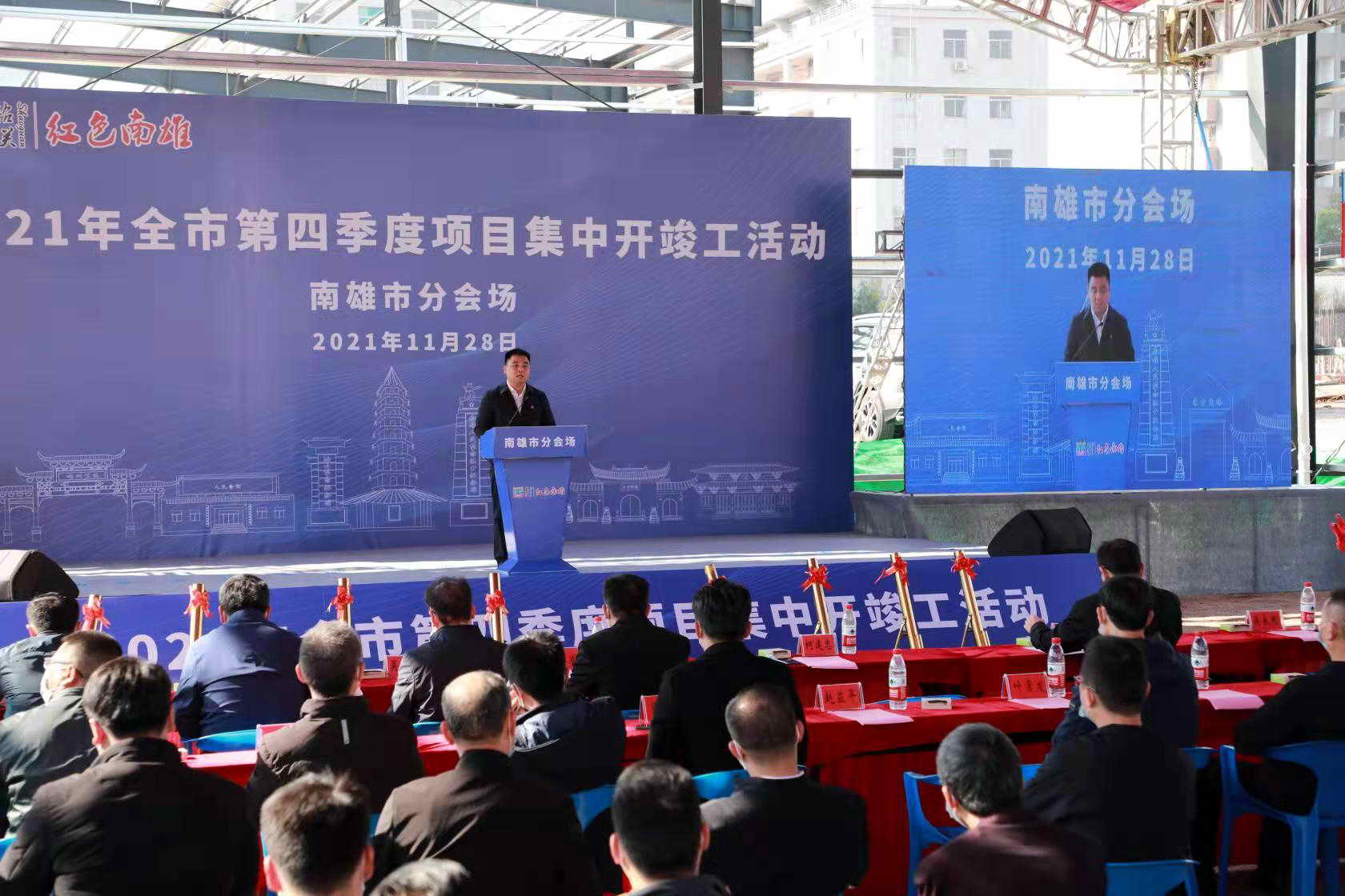 活动中,南雄市委书记林小龙通过视频连线的方式,向韶关市主会场汇报南雄集中开竣工项目情况。韶关主会场仪式结束后,林小龙宣布南雄市13个项目集中开工,2个项目竣工。开工企业代表、竣工企业代表先后作了发言。