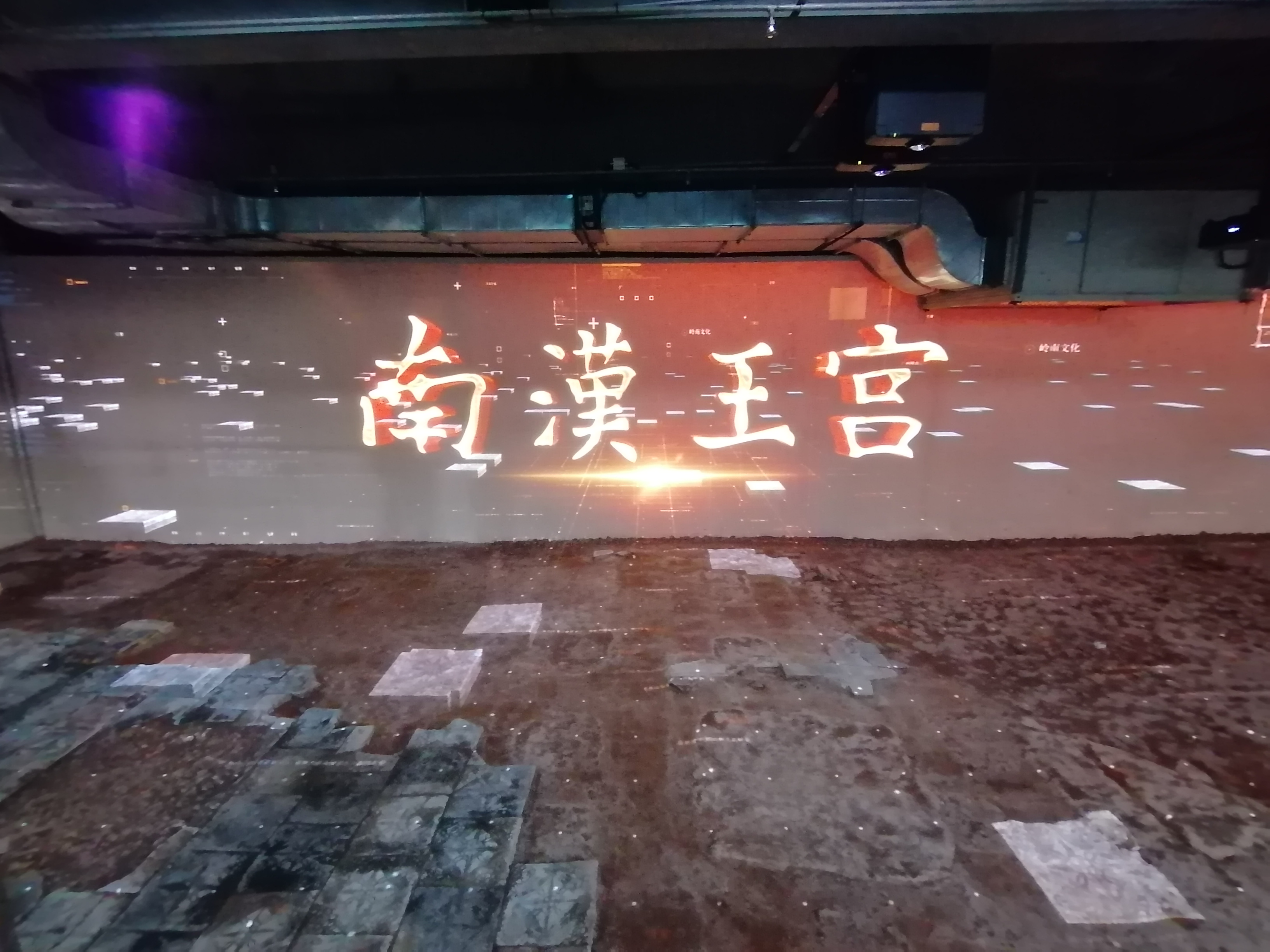 展示项目还包括时长5分钟的“户外墙体灯光秀”,以王宫展区陈列楼南侧外墙作为巨幅投影墙,通过高流明高对比度的DLP激光工程投影机来实现。影片撷取广州古代中轴线上不同历史时期标志性建筑,以南越国-南朝-南汉-宋代-明清-现代六个时期建筑为主线,构建广州古代中轴线上历代建筑发展变迁脉络,展现岭南融入统一多民族国家的历史进程与时间节点,展示两千年来广州城市的发展变迁。