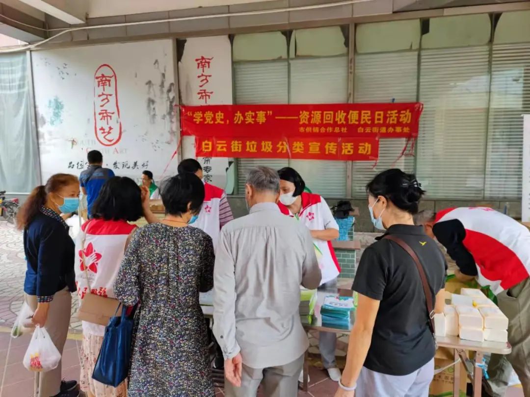 为有效推进生活垃圾回收再利用,促进垃圾源头分类,今年,白云街与广州市供销合作总社共同开展“资源回收便民日”活动,全年计划开展12期,活动范围遍布全街各社区及广场。