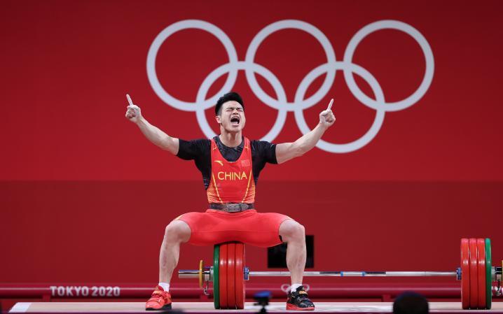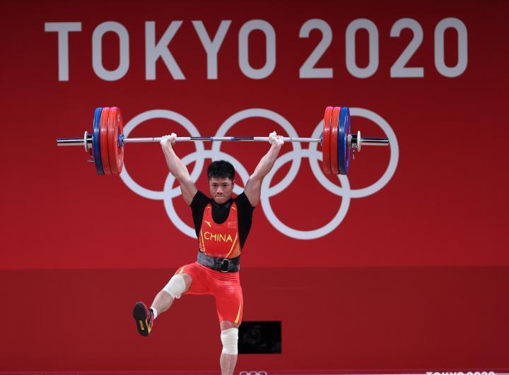 7月28日,中国选手石智勇在东京奥运会举重项目男子73公斤级决赛中,夺得冠军。