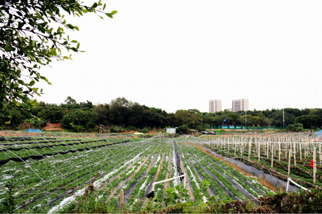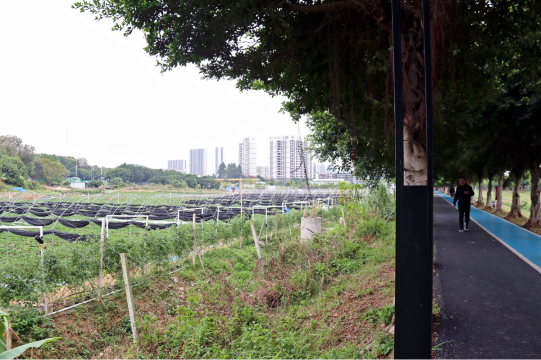 记者现场看到,在碧道东侧,是东沙村百亩果园,工人正忙着翻土、剪枝。果园里种有番石榴、圣女果、火龙果和草莓等农作物。6亩番石榴正值挂果期,被泡沫网袋和透明塑料袋包裹着的果实挂满枝头。圣女果、草莓已经开花,很快就能结果。在这里,街坊可以观光、采果、体验农作。