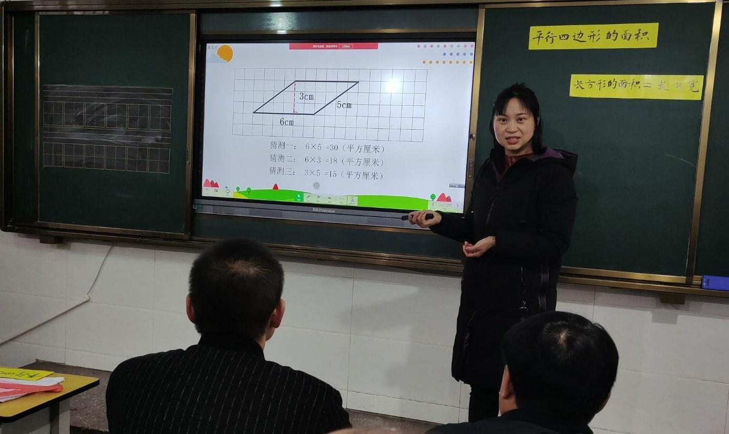 田坝镇中心完小校长李健飞担任校长之初,学校教学方式依旧停留在“粉笔+黑板+课本”阶段。她很焦虑。当地教育部门大力建设数字教育资源平台时,李校长看到走出这一困境的机会。当时,田坝镇中心完小引进包括希沃交互智能平板在内的一批信息化教学设备。