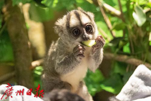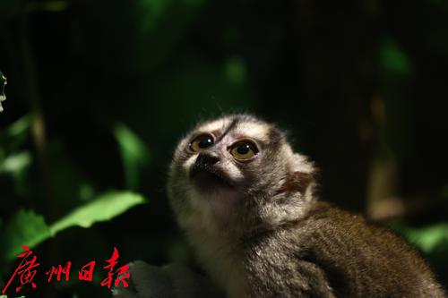 夜猴标志性的大眼睛也大有来头,据长隆保育员介绍,夜猴的眼睛占体重比例是灵长类中最大的,集光能力很强、尤其夜晚视力极佳,使它们能在漆黑的树林里穿梭,在黑暗中发现眼前飞过的昆虫,并马上捕捉。