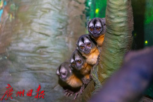 据长隆保育专家陈思明介绍,夜猴之所以养成了这样独特的作息规律,是为了争夺日益减少的资源,在进化中形成的特征。夜猴主要分布在拉丁美洲的亚马逊、厄瓜多尔、秘鲁、哥伦比亚和巴西的热带雨林从2015年开始,长隆集团研究繁育巴西夜猴和秘鲁夜猴,现保育有巴西夜猴、秘鲁夜猴共77只,累计新生繁殖30多只,积累了丰富的经验。取得以上成果,离不开长隆灵长类研究中心多年来在育幼、保育、健康管理上的研究和实践,如为新生的巴西夜猴宝宝“柚子”配制专属奶粉,严格消毒把控食品安全,定期轮换菜单促进营养均衡,准确设置环境温度湿度参数等等,让来自远方的夜猴家族在长隆快乐安家。