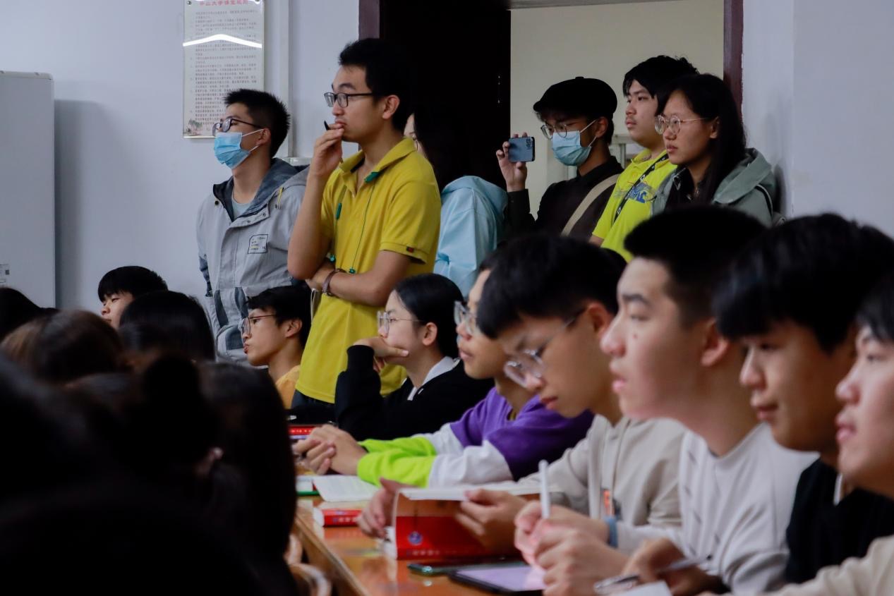 下课后,学生们还久久围着陈教授咨询。陈秀卿一直在耐心作答,直到解答完最后一个学生的问题,才收拾书包,而此时他已错过了回珠海校区的末班车。