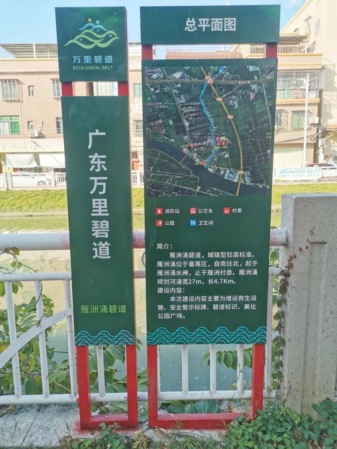 碧道是以水为纽带,以江河湖库及河口岸边带为载体,统筹生态、安全、文化、景观和休闲功能建立的复合型廊道。近年来,番禺区结合乡村振兴战略的实施,通过“碧道+美丽乡村”“碧道+工业”“碧道+骑楼”等方式,以碧道为载体充分展示当地特色民俗和文化,打造出胜石河碧道、市桥河碧道、丹山河碧道、北亭涌碧道等多条丰富多彩的生态廊道。
