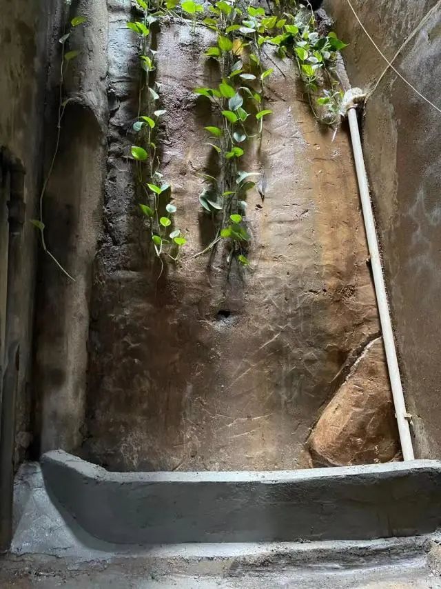 新加装在墙侧(图右)的接水管,有效解决了墙面渗水的问题。