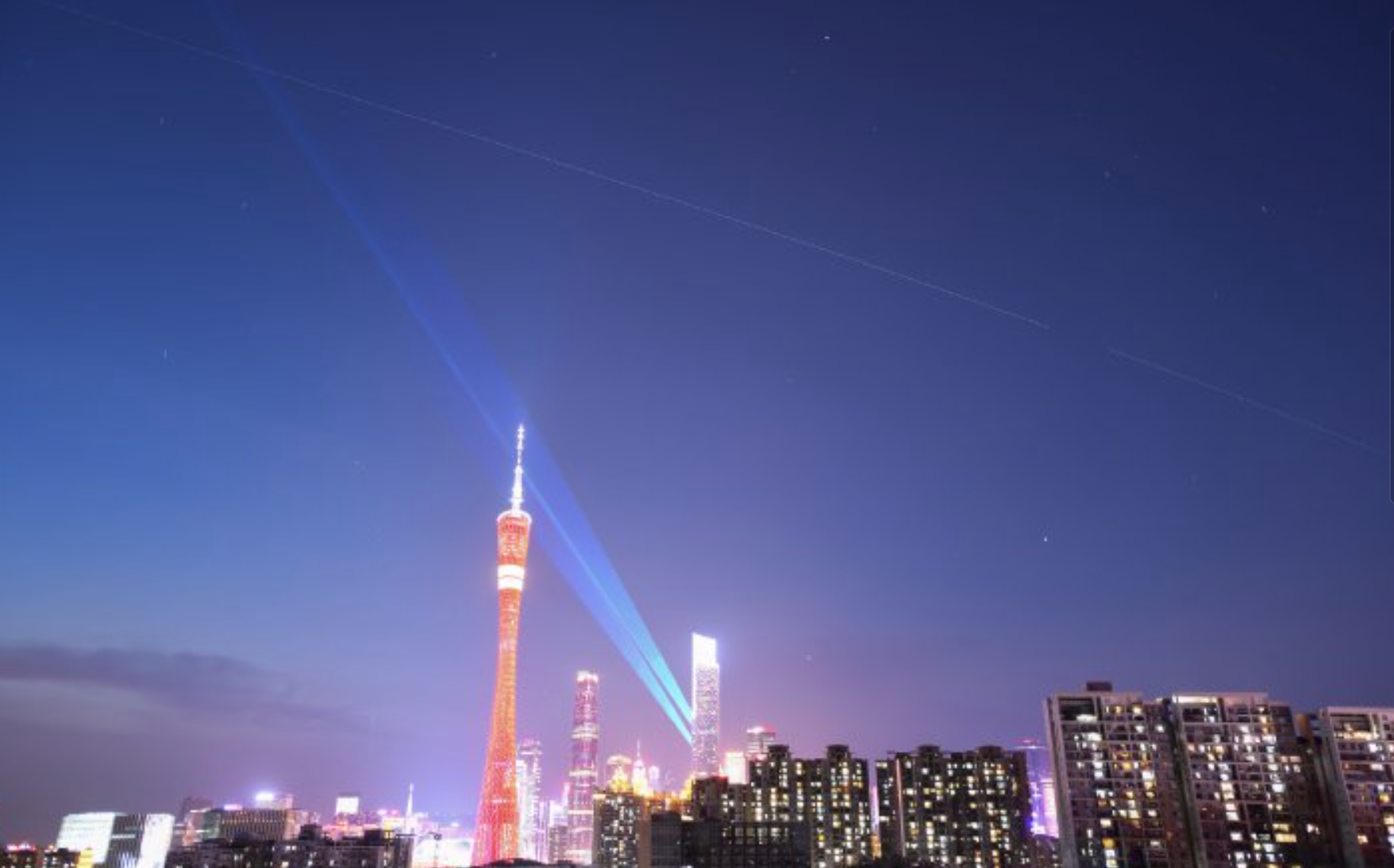 (7月4日,中国空间站过境广州,与广州塔同框。)