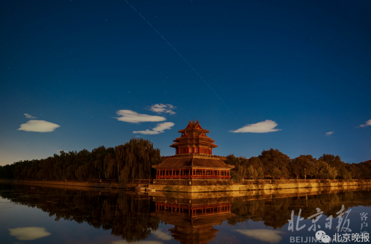 (8月25日,中国空间站在故宫角楼上空划过。)