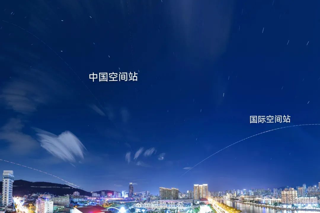 中国空间站飞过上空的画面。