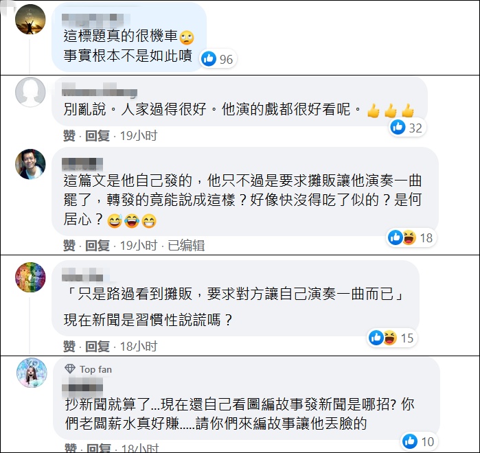 然而在這些台媒的報道中,卻煞有介事地造謠稱黎耀祥來到大陸工作後似乎「發展不順,晚景凄涼」,還形容他賣樂器的畫面「看起來有些辛酸」,直到文末才簡單提了一嘴「原來這是他旅遊時的視頻」。這波「新聞造假」博眼球也被台灣網友刷屏怒罵,「這標題真的很機車哎」「以前是抄新聞,現在都開始編新聞了嗎……」