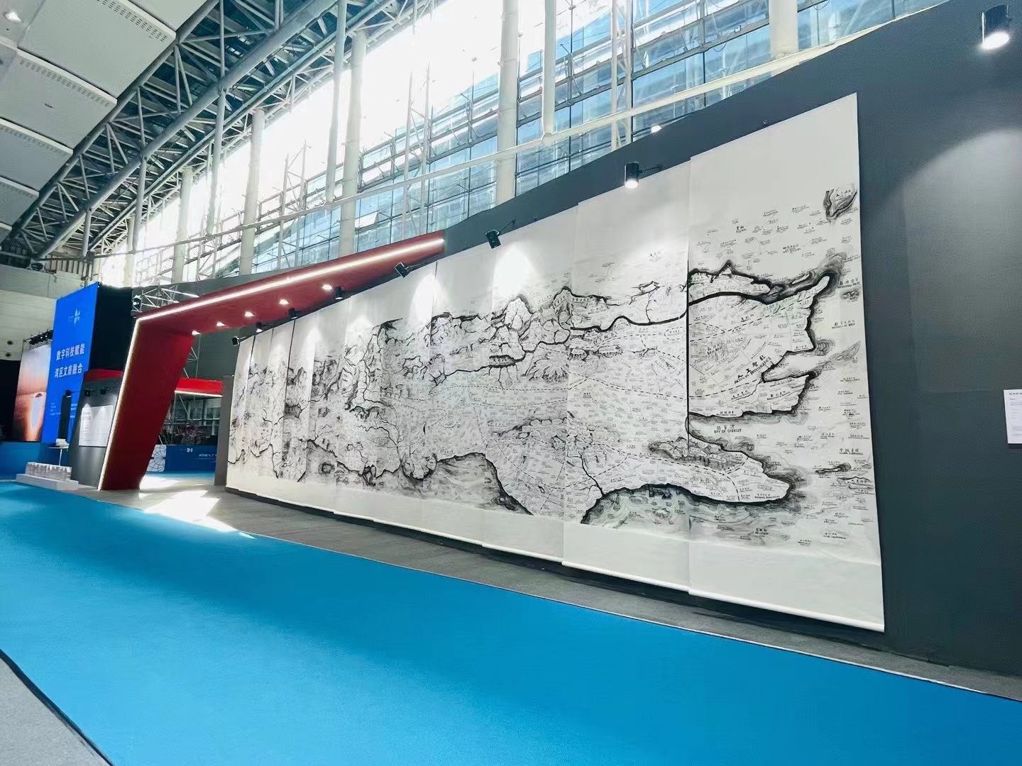 展览现场,由亚洲数字艺术展策展人、中央美术学院实验艺术学院院长邱志杰创作的长达13.75米的《技术史地图》宏大且气势磅礴,这是邱志杰历时十余年创作的《寰宇全图》系列中的“数字科技部分”。