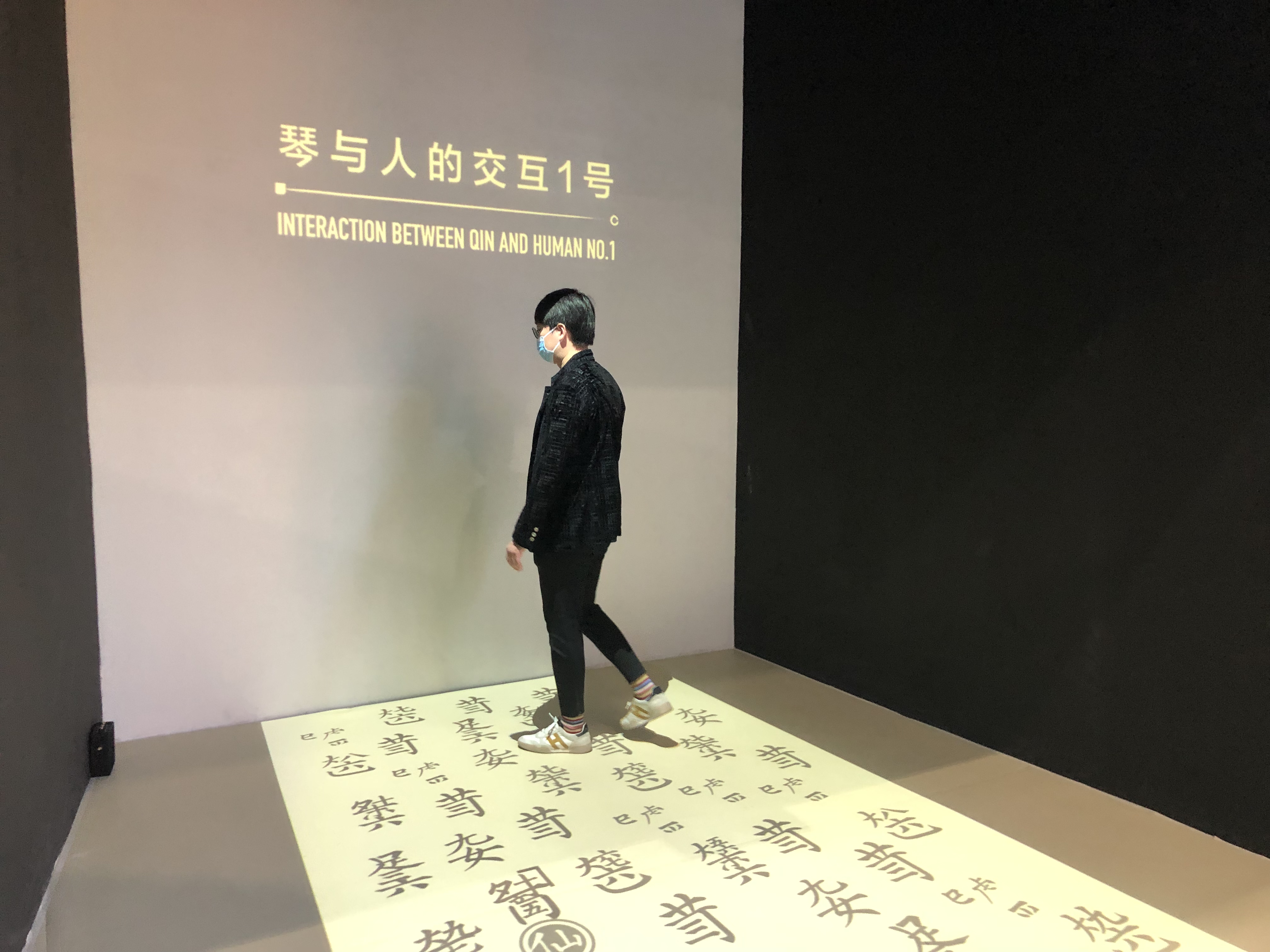 作品利用人工智能图像识别算法,通过多媒体交互的方式,邀请观众参与到从古琴减字谱到古琴音乐的转化过程当中来。参与者可以依照指引或是自己的喜好在沉浸空间内移动,作品将跟随观众的脚步发出古琴的琴声,由此体验由于交互的不同所产生琴曲的不同,也能近距离感知古琴这一乐器的魅力。