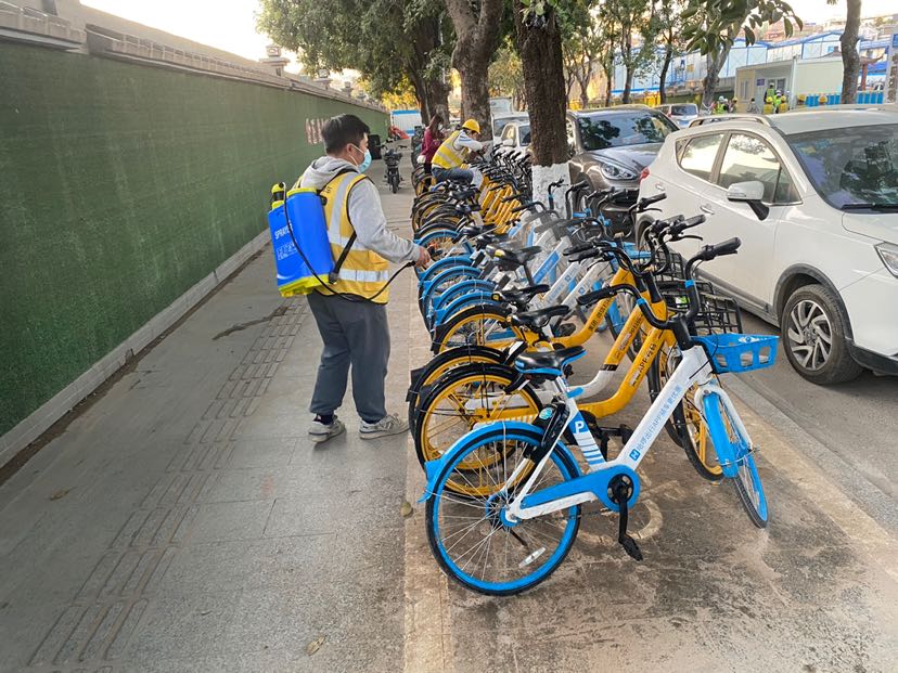 记者了解到,12月4日,为积极响应广州市疫情防控需要,共享单车企业加强共享单车无差别消毒运维力度,即单车运维员不分车辆品牌开展共享单车联合消毒。