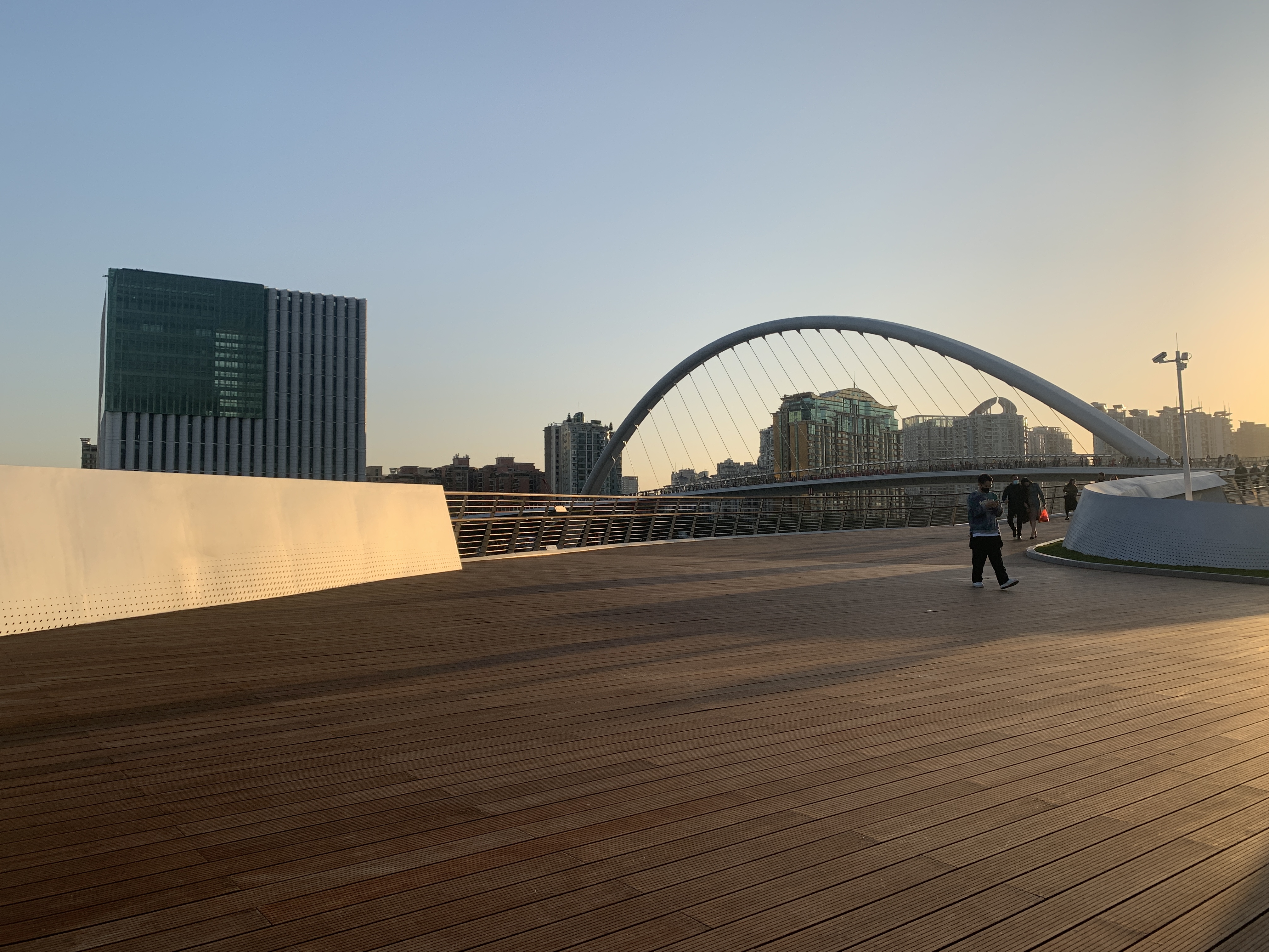 在无障碍设施标识的指引下,记者轻松找到了无障碍坡道。海心桥利用大跨度的弧线,设置了无障碍坡道。弧线的大跨度延长了引桥的长度,让行人有更多角度欣赏美景的同时,也无形中减缓了坡道的坡度,对于腿脚不好的老年人或者轮椅使用者,上坡、下坡更方便也更安全。