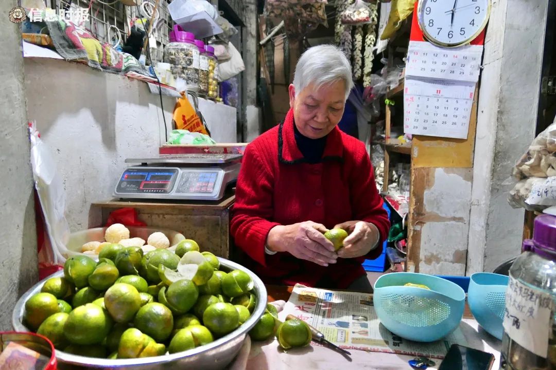 周姨回忆,起初她经营的不过是家卖水果的小店,但早在那个时候,她已经会在店门前晒陈皮。“渐渐地附近街坊都知道我会做陈皮,开始陆陆续续有人来找我买陈皮。”
