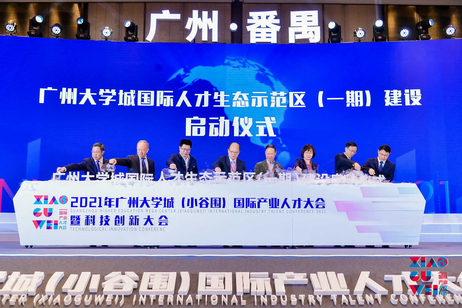 大会上,宣布广州大学城国际人才生态示范区(一期)正式启动。番禺区立足广州大学城(包括南北两岸),分三期布局建设广州大学城国际人才生态示范区,将其打造成为广州市人才生态园、广东省国际人才生态岛,其中:一期建设广州大学城国际人才生态示范区北区,二期建设广州大学城国际人才生态示范区南区,三期建设广州大学城国际人才生态示范区核心区,构建“圈层联动、核心示范”的广州大学城国际人才生态示范区发展格局。