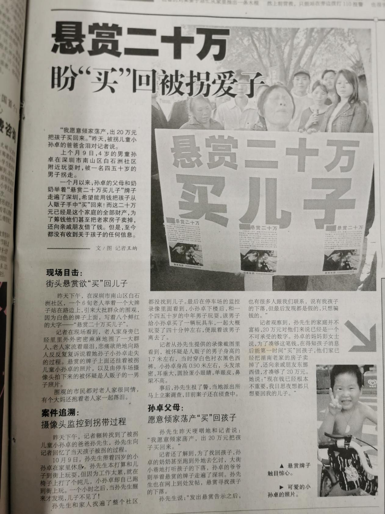 值得一提的是,孙海洋寻儿事件也是本报2007年(详见2007年11月14日广东新闻版)最早进行报道的。