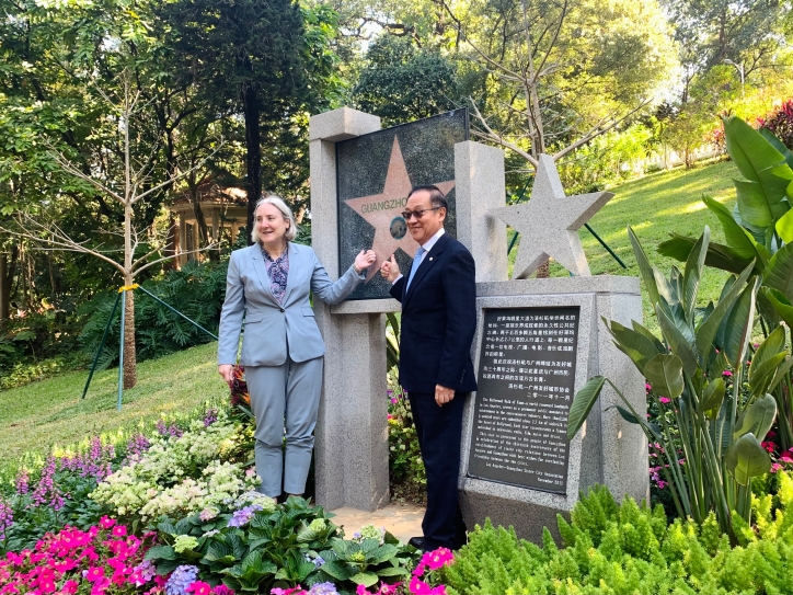 广州市人民政府外事办公室相关负责人介绍,在场地内原有缔结友好城市纪念碑、10周年纪念石的基础上,还从云台花园将20周年纪念碑、30周年纪念碑迁移至此,结合洛杉矶市花鹤望兰、广州市花木棉以及40周年纪念景观雕塑进行集中展示。