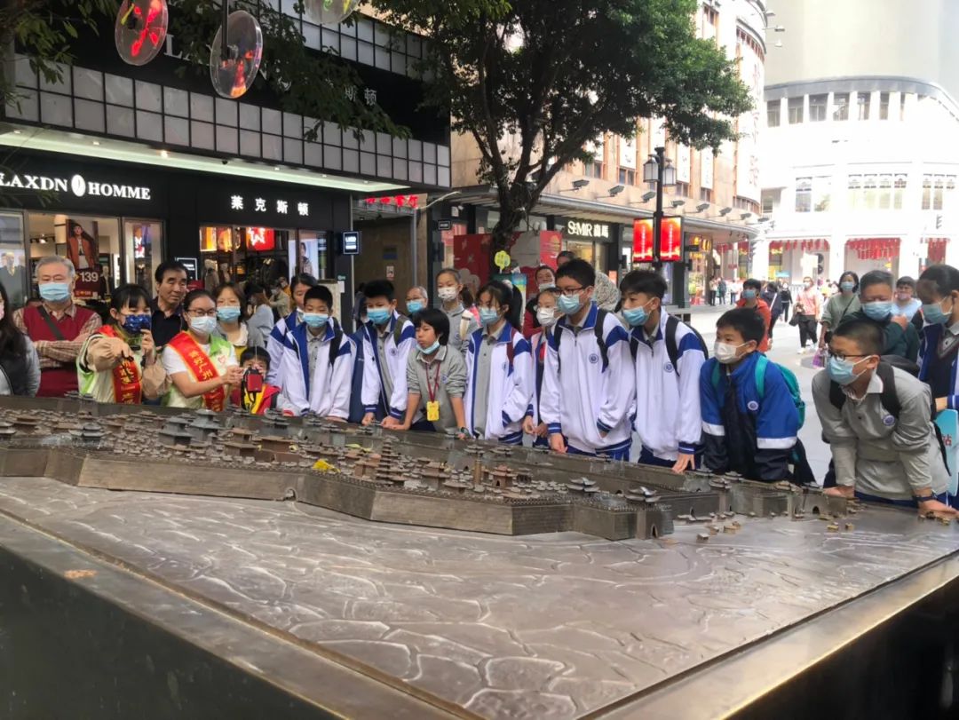 在广州志愿驿站旗舰站资深讲解员的带领下,青少年们从财厅前社区出发,并按照太平馆、清代广州城坊示意图、北京路千年古道遗址、铜壶滴漏等路线进行实地导赏学习。