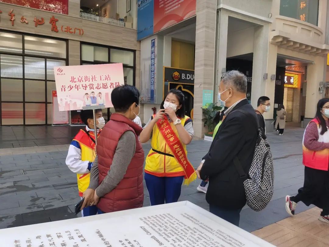 为庆祝国际志愿者日,弘扬志愿服务精神,北京街社工服务站在广州北京路文化核心区管理委员会的指导下开展青少年导赏志愿活动,并得到广州志愿驿站旗舰站的培训支持。