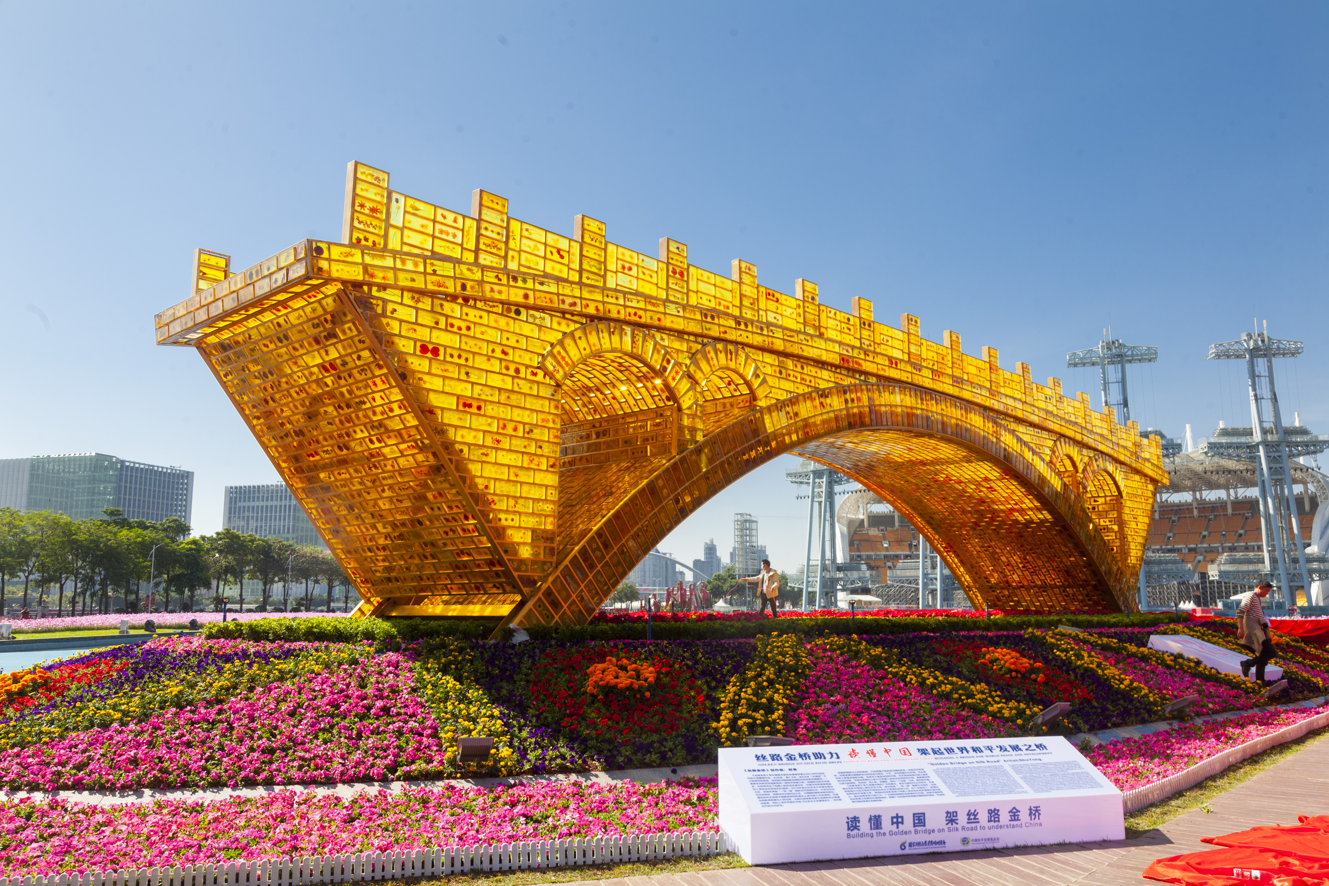 2021年“读懂中国”国际会议(广州)于2021年12月1日在广州启幕。当日上午,“一带一路”大型主题艺术景观“丝路金桥”受邀助力“读懂中国”,在广州海心沙公园举行了揭幕仪式。