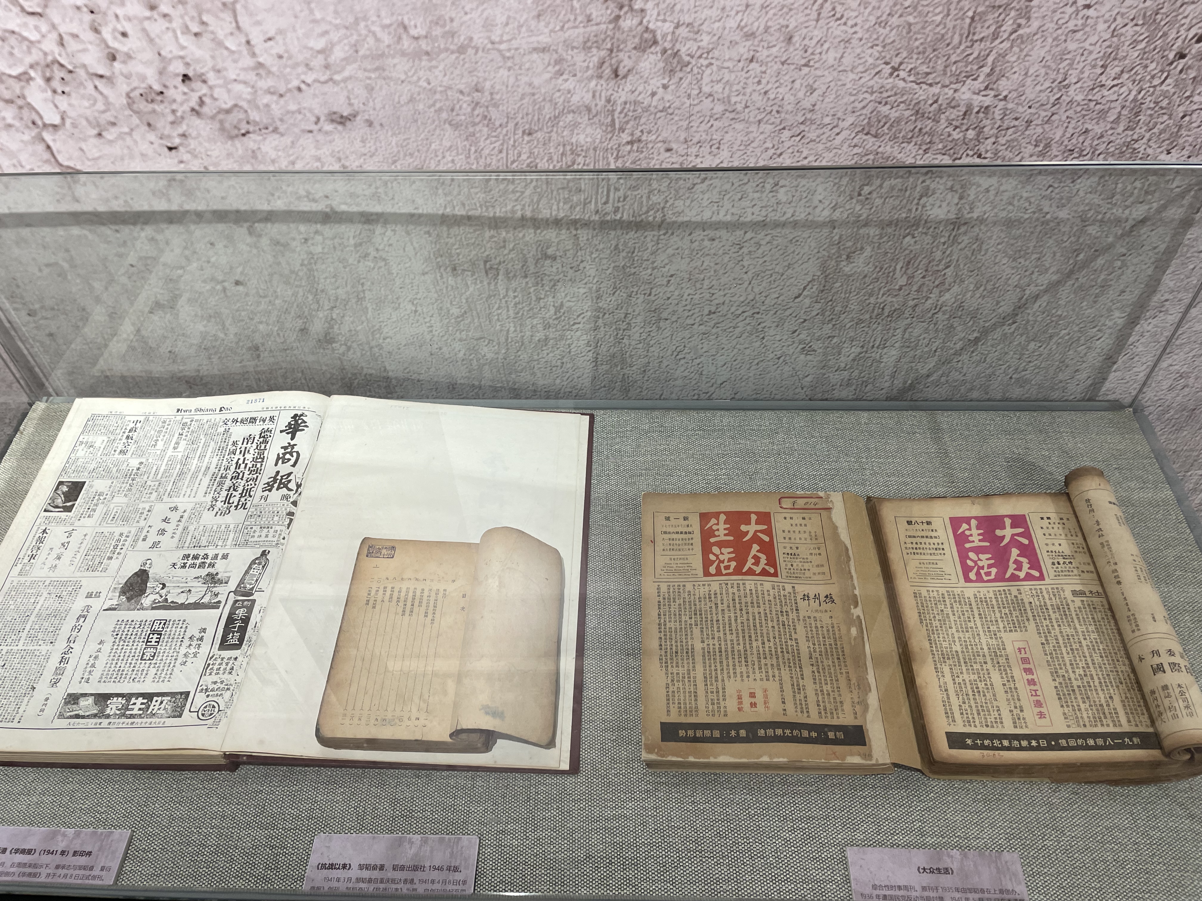 本次展出文献中,有夏衍、茅盾、梁漱溟、萨空了、华嘉等文化名人回忆作品在1943年前后的初印本。如作家夏衍的《走险记》(1942年版),记述了香港沦陷后,夏衍等人从香港用渔船渡海至澳门,再乘船转都斛登陆,后由陆行至台山这一段惊心动魄的经历。萨空了的《香港沦陷日记》(1946年版),记事时间从1941年12月8日战争爆发开始,到1942年1月25日作者逃离香港为止,历时共49天。其中不仅有萨空了本人在香港沦陷前后的经历,还记录了许多当时在港文化名人梁漱溟、邹韬奋、范长江等数十人的情况,具有很高的史料价值。太平洋战争爆发时,诗人徐迟在印刷所待印的《诗歌朗诵手册》(1942年版)清样毁于炮火,仅存一份初校稿;1942年初逃离香港前,徐迟忍痛销毁了他的所有书稿,将该初校稿装在一个热水瓶内,从澳门经沦陷区带至桂林后出版。此外,展览结合对营救路线的梳理,挖掘出一批广东、香港、澳门等地三四十年代的文献资料,如1934年版《今日之四邑》,内有广东新会、台山、开平、恩平四县旧照100余幅;以及罕见的营救行动集中点“香港大中华酒店”旧照等。