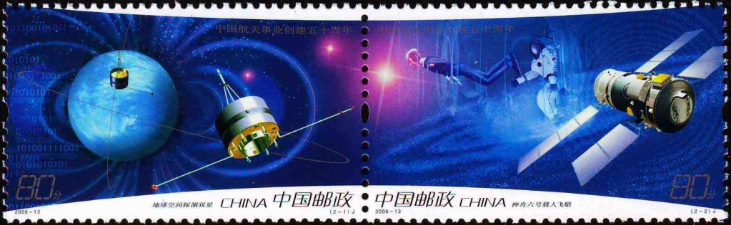 2006年6月8日,为纪念中国航天事业创建50周年,原国家邮政局发行《中国航天事业创建五十周年》纪念邮票1套2枚,展示了中国航天事业的辉煌成就。