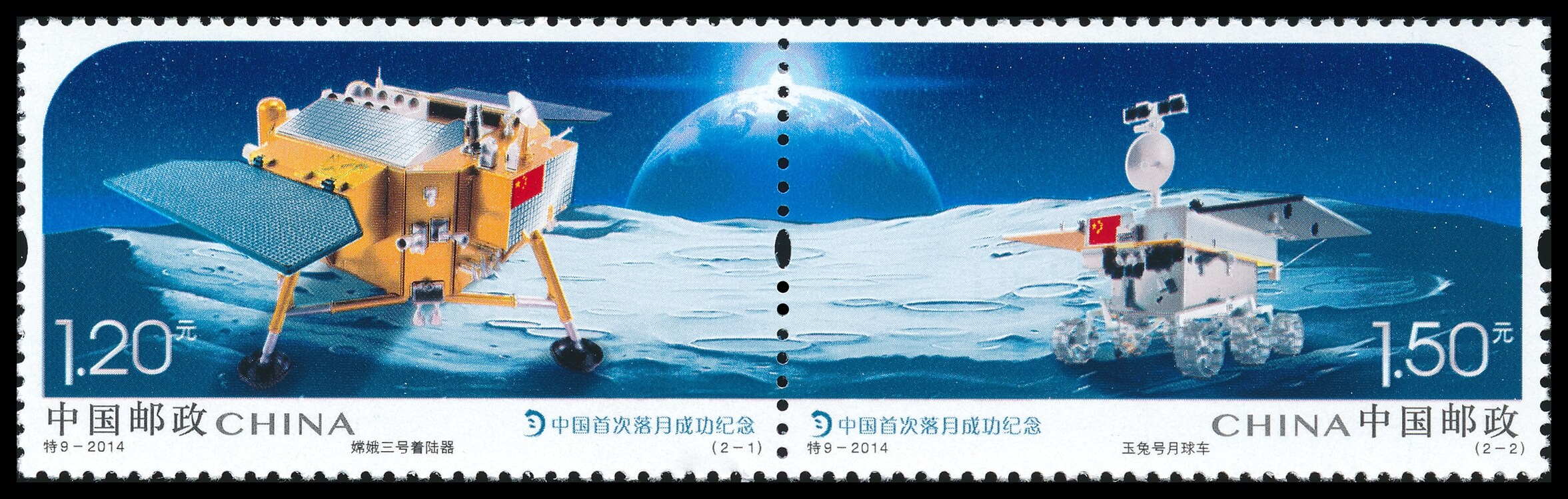 2014年1月1日,为纪念中国首次落月成功,中国邮政特别发行《中国首次落月成功纪念》邮票1套2枚。本套邮票采用连票形式,从而使画面更加宏大、壮观。让人对落月和探测的整个过程有一个全面的了解。