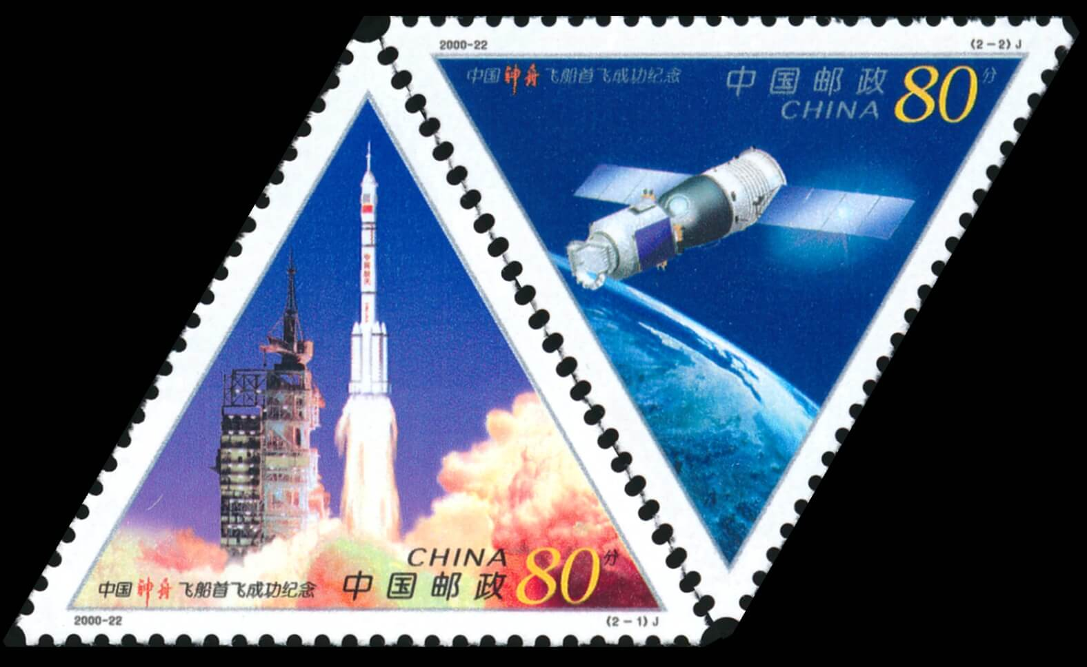 2000年11月20日,为纪念我国第一艘载人航天飞船“神舟”号成功发射一周年,原国家邮政局发行《中国“神舟”飞船首飞成功纪念》纪念邮票1套2枚。