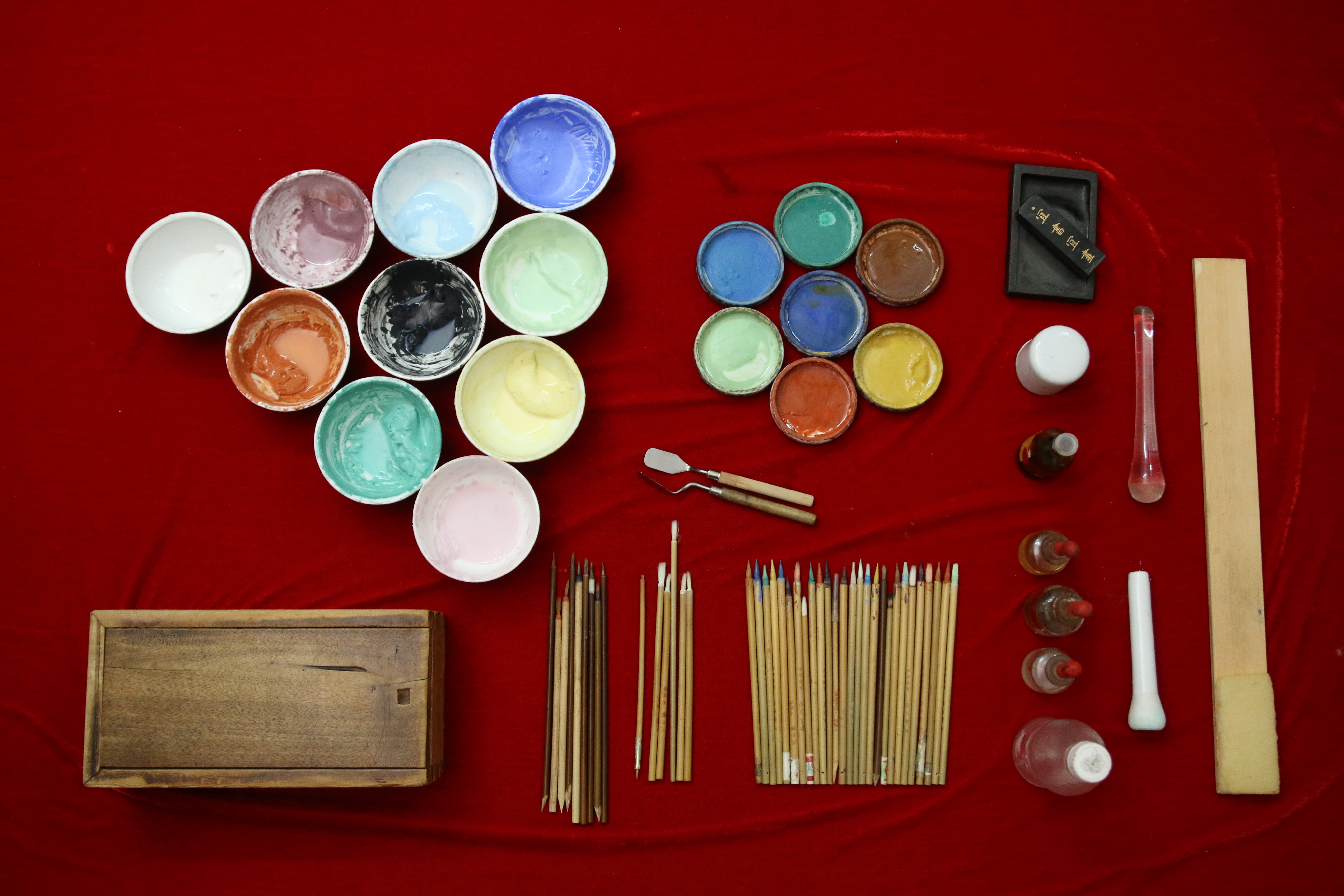 (广彩传承人周承杰所持有的全套广彩工具 拍摄:文木)