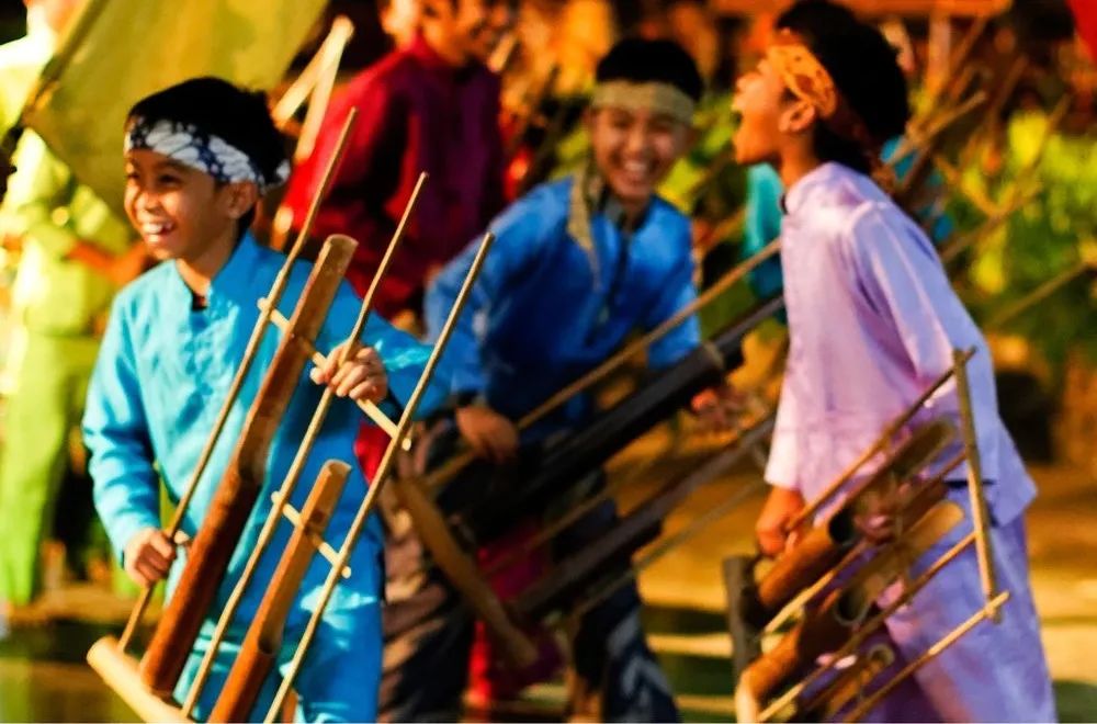 昂格隆是印尼一种历史悠久的传统乐器,主框架用竹子做成,当中用藤条线悬挂着两节到四节竹筒,通过竹框摇动产生特定的音调。昂格隆被联合国教科文组织列为世界非物质文化遗产,也是招待外宾的压轴节目,成为向世界展示印尼的悠久文化瑰宝。