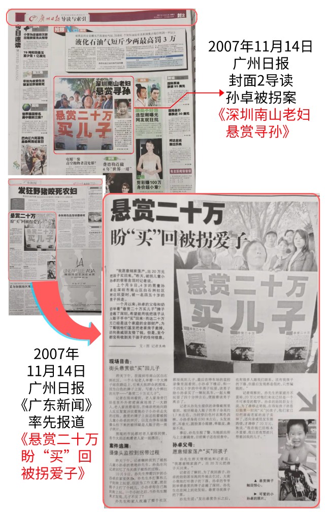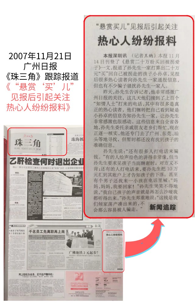 2007年11月14日,第一篇报道《悬赏二十万盼“买”回被拐爱子》(点击查看原文)见报了。