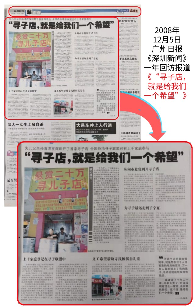 ▲2008年12月5日,寻子店故事再次关注孙海洋寻子。