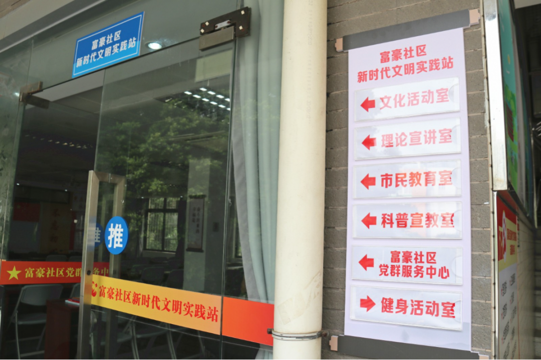 富豪社区的新时代文明实践站、党群服务中心、居委会办公场地“三合一”,方便居民向社区反映需求。