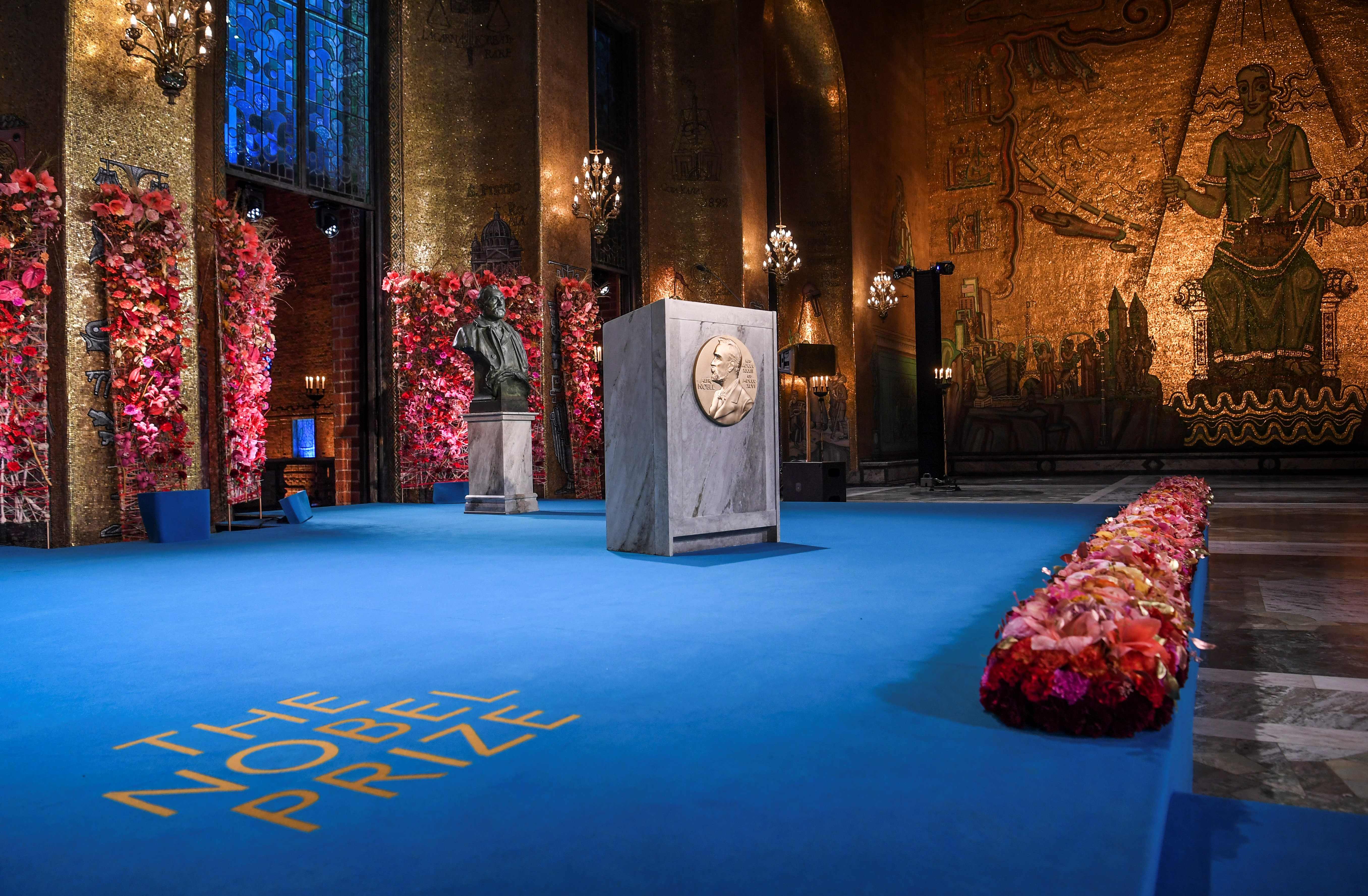 瑞典王室成员、诺贝尔奖各奖项评选委员会评委以及300余名观众当天在瑞典首都斯德哥尔摩市政厅出席线上颁奖仪式。评选委员会代表分别按惯例宣读获奖者的成就。诺贝尔奖得主此前已在各自国家获颁相关奖项,线上颁奖仪式播放了他们的领奖视频。