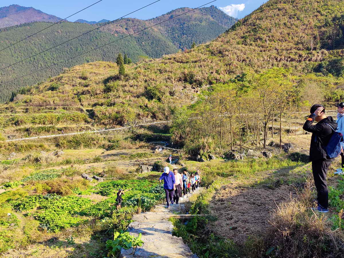 秀美的山峰、清澈的溪流、笔立的山墙、斑驳的檐街、深邃的巷道,西京古道一路的风景成为各路“英雄好汉”拍照打卡的热点。本次徒步活动以“参观学习”为载体,以“活动体验”为手段,通过西京古道串联华南研学基地、大坪红色古村各点,构建起一个“红、绿、古”的绿色文化空间。