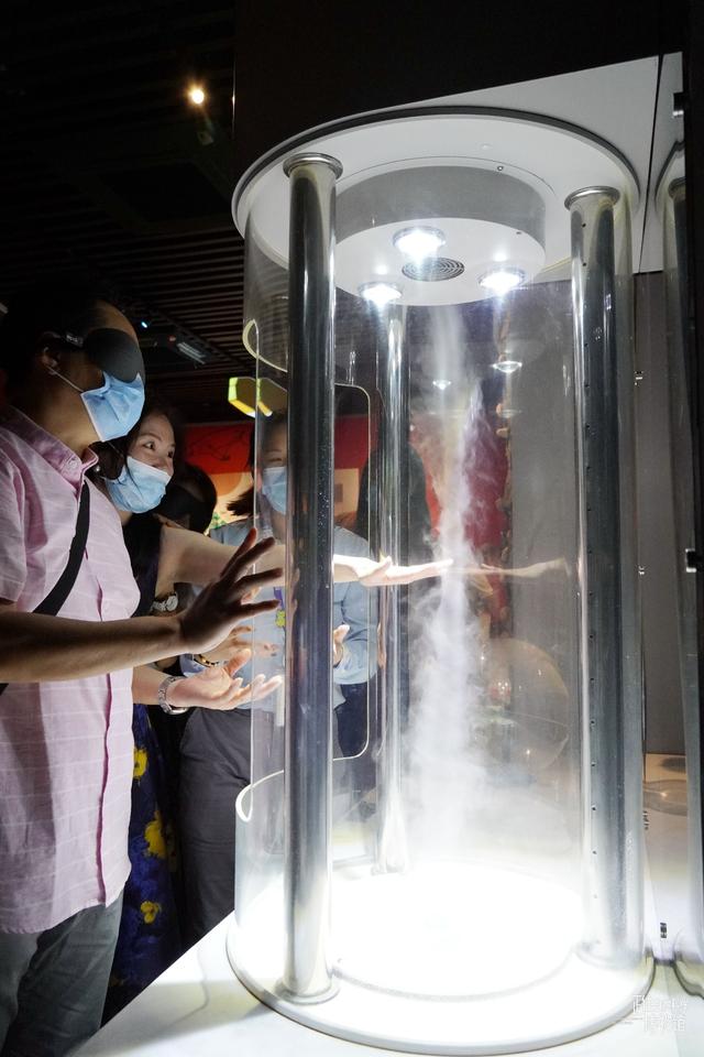 “我记得摸到了一个摇摇晃晃的东西,角龙和猩猩公仔软软的,嘴巴还可以张开,很有趣”——这位17岁的视障女孩,通过触摸博物馆中的公仔,了解三角龙的特征与形态。她还在“非视觉”导赏工作坊中,通过互动装置体验到龙卷风的形成。