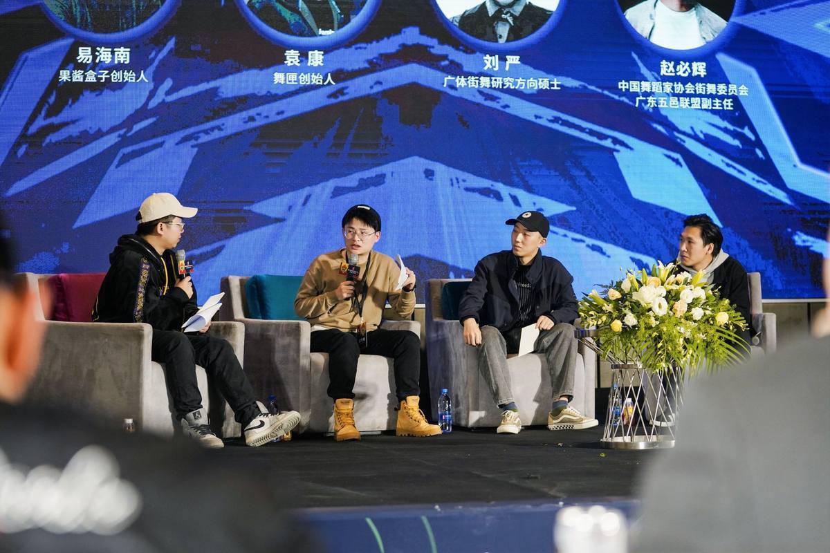 “对话嘉宾”的另一场讨论围绕 “街舞产业的数字化升级”议题展开,果酱盒子创始人易海南、舞匣创始人袁康、广体街舞研究方向硕士刘严、中国舞蹈家协会街舞委员会广东五邑联盟副主任赵必辉参与探讨。各方表示,开放、兼容、共享是当今时代特征,街舞行业的发展更要适应“数字化+”时代,如何顺势而上,依靠产业数字化竞争,实现街舞产业的数据价值,值得深思。