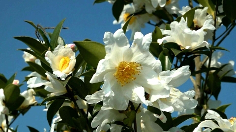 记者今天来到万亩油茶基地看到,满山连片的油茶花正迎风怒放,远远望去,连片的山坡上仿佛覆盖了一层白雪。洁白的花瓣,金黄色的花心,团团簇簇、层层叠叠,在蓝天映衬下,耀眼夺目。还有一朵朵含苞欲放、透着粉色的花骨朵儿,在阳光的照射下显得生动活泼、可爱极了。微风拂来,花儿摇曳、婀娜多姿,顿时清香四溢,沁人心脾。那些昂着头的花朵,好似要吸光这天地灵气。而在每一朵花蕊里都可以看得见旺盛的花蜜,悄然汇聚成了一腔馥郁,引来了无数蜜蜂。