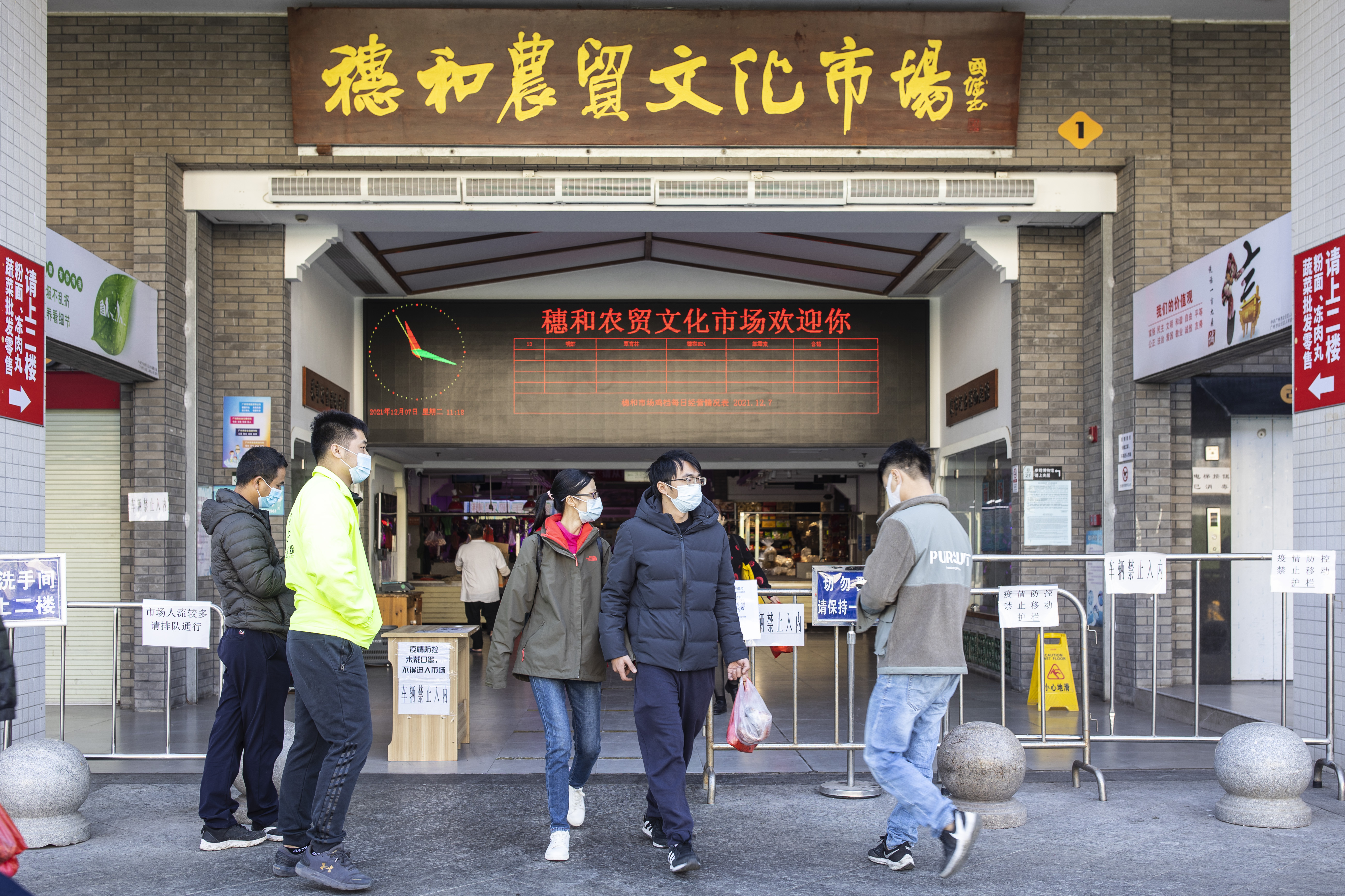 日前上午十点多,出示健康码,再经过工作人员的测温,记者从穗和农贸文化市场正门进入,两边橱窗里展示着《清明上河图》中的集市场景,使这个农贸市场看起来有点特别。