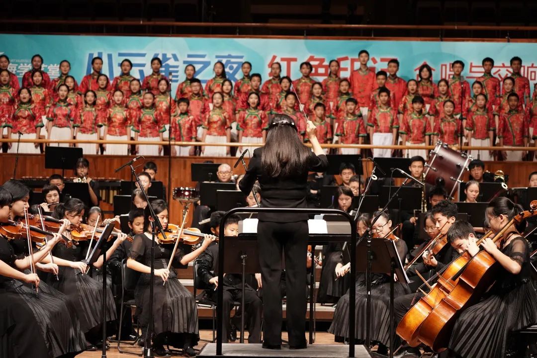 由星海音乐厅主办的星海学艺堂:小云雀之夜·红色印记合唱与交响音乐会正在隆重举行。广州市越秀区少年宫小云雀合唱团与小云雀交响乐团两大名团强强联手,又一次用天籁之音和震撼交响为广大观众朋友送上一场精彩绝伦的音乐盛宴。