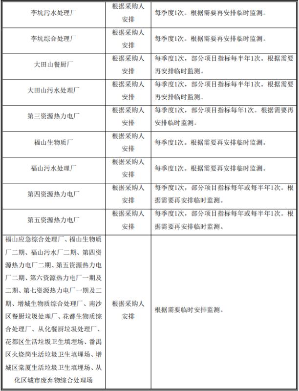 不同的终端处理设施监测频次略有不同。例如,兴丰生活垃圾卫生填埋场、第一资源热力电厂、李坑污水处理厂等设施均需要每季度进行1次监测,第四资源热力电厂、第五资源热力电厂在每季度进行1次监测的基础上,部分项目指标每年或每半年进行1次监测,并根据需要再安排临时监测。