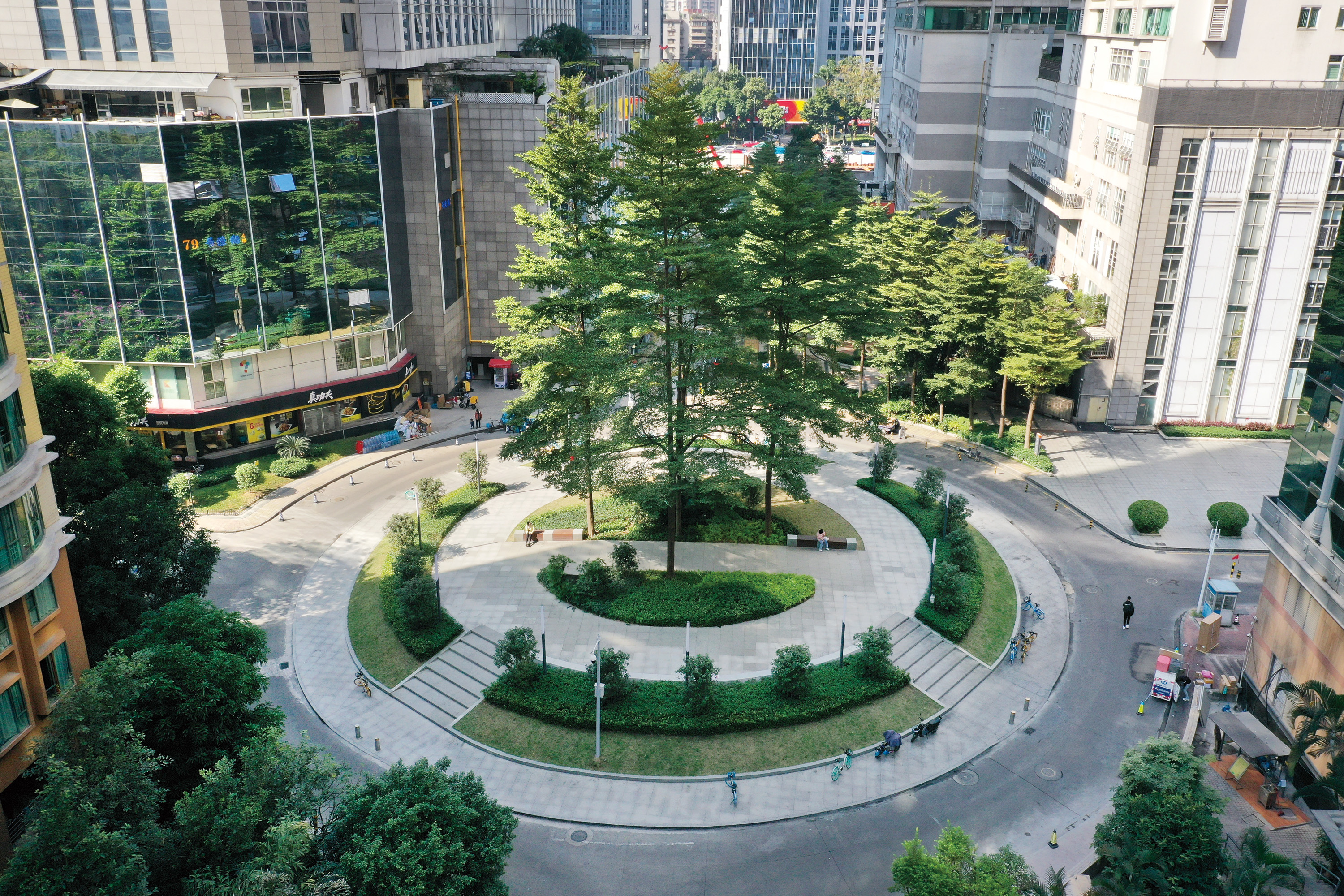 原来,过去的华普绿岛小灌木比较杂乱,景观视觉形象较弱,也没有太多活动空间。据天河区住建园林局有关负责人介绍,华普绿岛周边都是高楼大厦,没有什么活动空间,所以把华普绿岛定位为“温馨社区花园”,现在老人家会来跳舞打拳,孩子会来玩耍,正是温馨的社区花园的样子。绿岛经过改造后,几个同心圆从里向外依次是五棵高大的细叶榄仁和草坪,往外是宽敞的平台和坐凳,街坊可以坐在树荫下休息。往外的四个斜坡镶嵌着四个花池,种有25棵桂花树,在花开季节,人们来绿岛活动时可以闻到桂花的香气,花池还种植了多年生的开花植物,花开时节也会更美观。再往外是人行道和行车道,改造后的绿岛还增加了无障碍通道,让有需要的人们也可以到外圈人行道活动。此外,还增加了照明路灯,晚上人们来活动也安全多了。