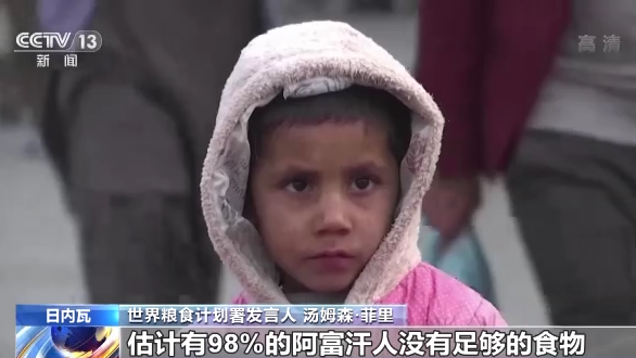 世界粮食计划署发言人 汤姆森·菲里:估计有98%的阿富汗人没有足够的食物,较8月份增长了17%,严重的经济危机,长期的冲突,再加上干旱,许多普通家庭的生活难以为继。
