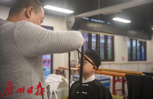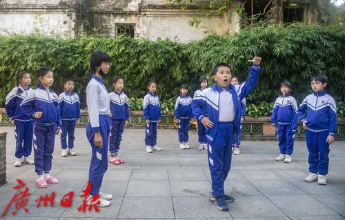 少儿粤剧传承基地的学员在练习粤剧唱段。