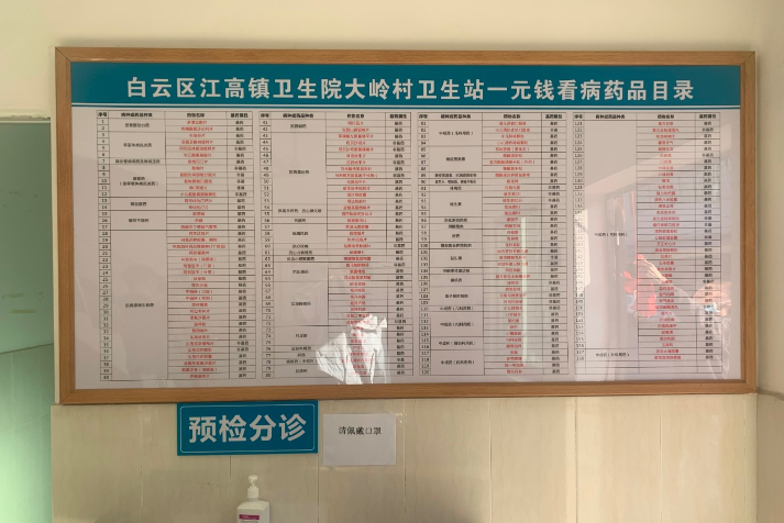 江高镇卫生院大岭村卫生站预检分诊处有一元看病药品目录
